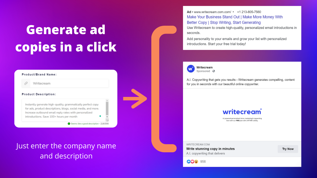 Sure, Writecream presents a free trial.